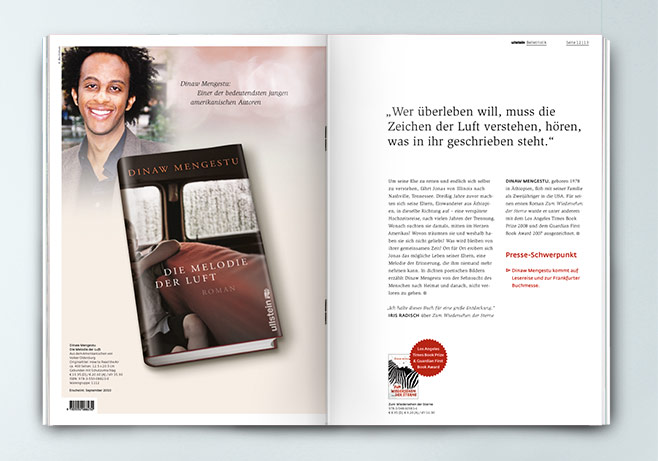 Der Ullstein Verlag wollte einen neuen Auftritt für seine Hardcover-Vorschau und hat zum Pitch eingeladen. Die Aufgabe: einen »magazinigen« Look entwickeln, der zum Lesen animiert, ohne an Seriosität zu verlieren. Die Vorschau des Verlags bietet neben der Präsentation von Novitäten und Marketingseiten z.B. auch spannende Interviews mit den Autoren. Also präsentierte ich eine neue Gestaltung, die wesentlich lebendiger ist als bei den meisten Vorschauen üblich.