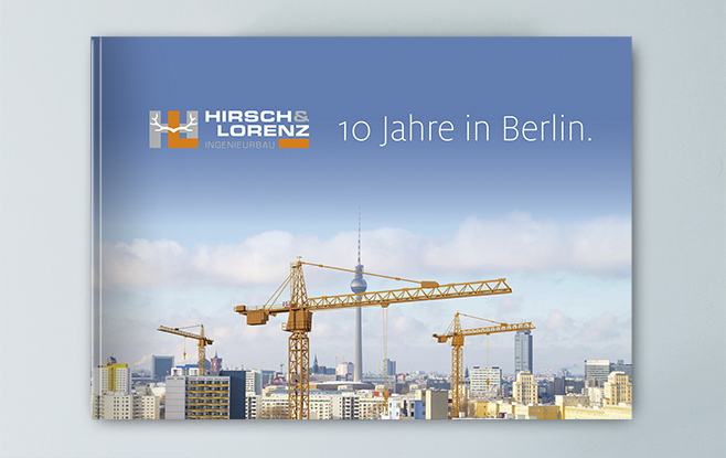 Bilder von Baustellen, Kränen, Rohbauten – wie kann man die Leistung eines Ingenieubüros überraschend und ansprechend anders darstellen? Bei der Gestaltung der Imagebroschüre zum 10-jährigen Jubiläum von Hirsch & Lorenz, einem Ingenieurbüro aus Berlin, waren die Auftraggeber sehr offen für eine sehr kreative Gestaltungs. Für Casser und Partner.